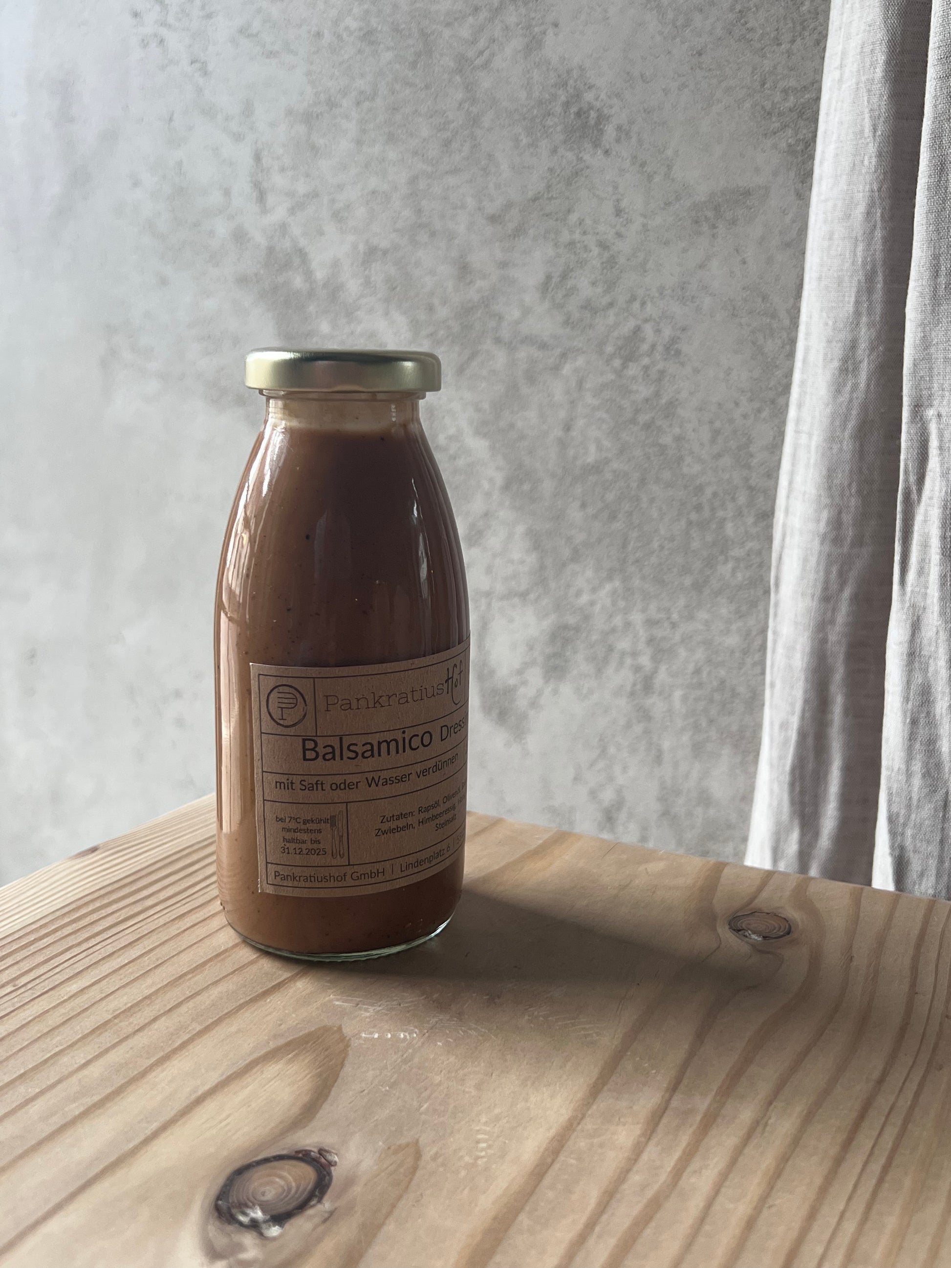 Unser Balsamicodressing kombiniert milden Balsamico- und Himbeeressig mit Mainzer Honig, Bio-Zucker und Steinsalz. Es bietet eine ausgewogene Balance aus Säure und leichter Süße und eignet sich ideal für frische Wintersalate. Wahlweise mit Saft oder Wasser verdünnen.